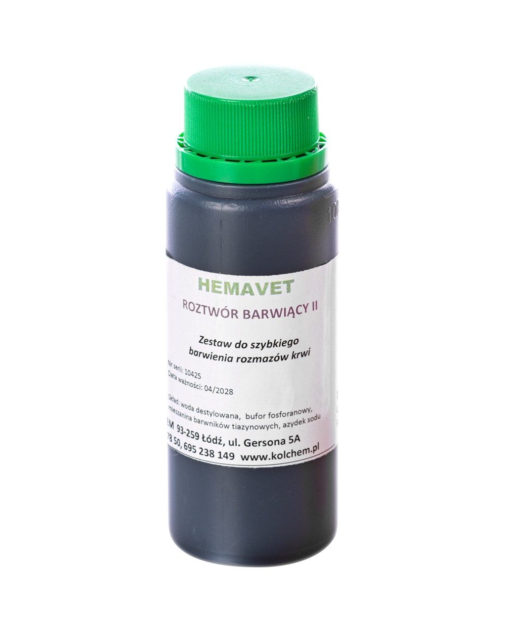 Roztwór barwiący II – zasadowy barwnik, barwiący zasadochłonne struktury, takie jak bakterie, cytoplazma limfocytów, jądra komórkowe, ziarnistości bazofilów i płytki krwi, konserwowany azydkiem sodu. Stosowany podczas używania barwnika I oraz utrwalacza HemaVet. Służą one do szybkiego barwienia różnicującego rozmazów hematologicznych oraz rożnych próbek klinicznych w diagnostyce in vitro. Barwnik koloru niebieskiego.