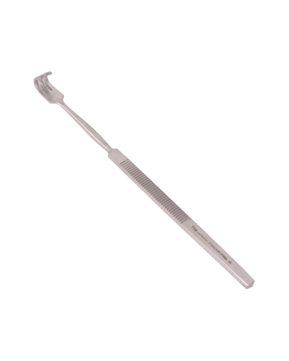 Ostry hak z 3 ząbkami używany jest podczas zabiegów chirurgicznych do podtrzymywania krawędzi rany w pozycji otwartej. Hak jest wielorazowego użytku i można poddać go sterylizacji. Długość całkowita wynosi 16 cm.