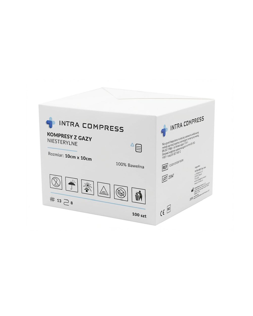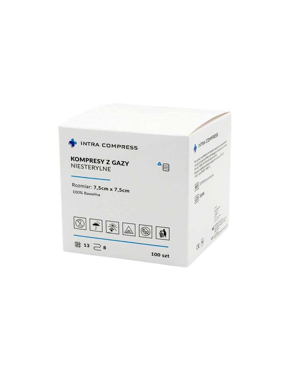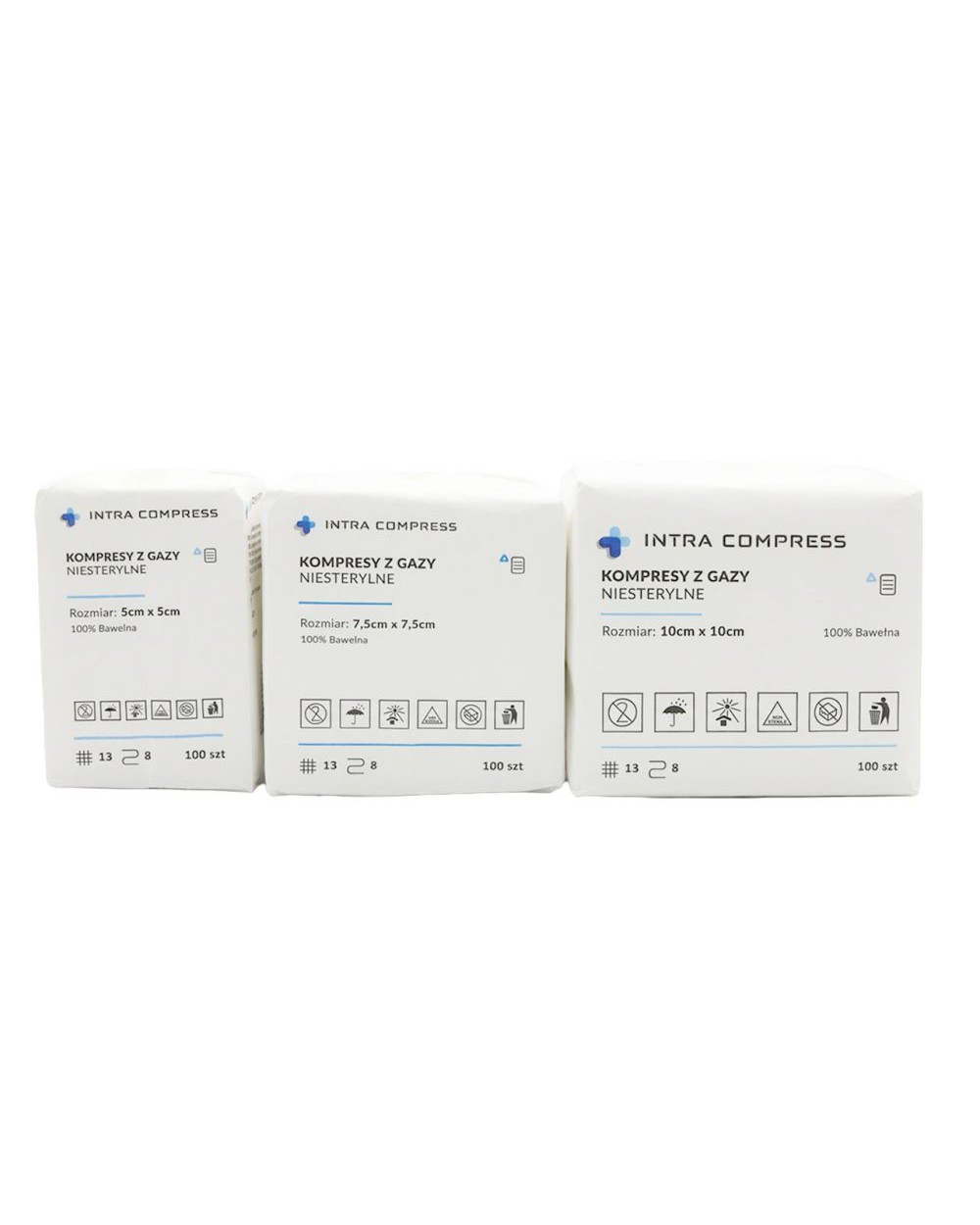 Produkty niesterylne INTRA COMPRESS to wysokojakościowe kompresy 8-warstwowe i 13-nitkowe z gazy bawełnianej, które doskonale znajdują swoje zastosowanie zarówno do opatrywania ran (po wcześniejszej sterylizacji) jak i do codziennego nieinwazyjnego użytku w szpitalach, przychodniach, laboratoriach czy salonach kosmetycznych.