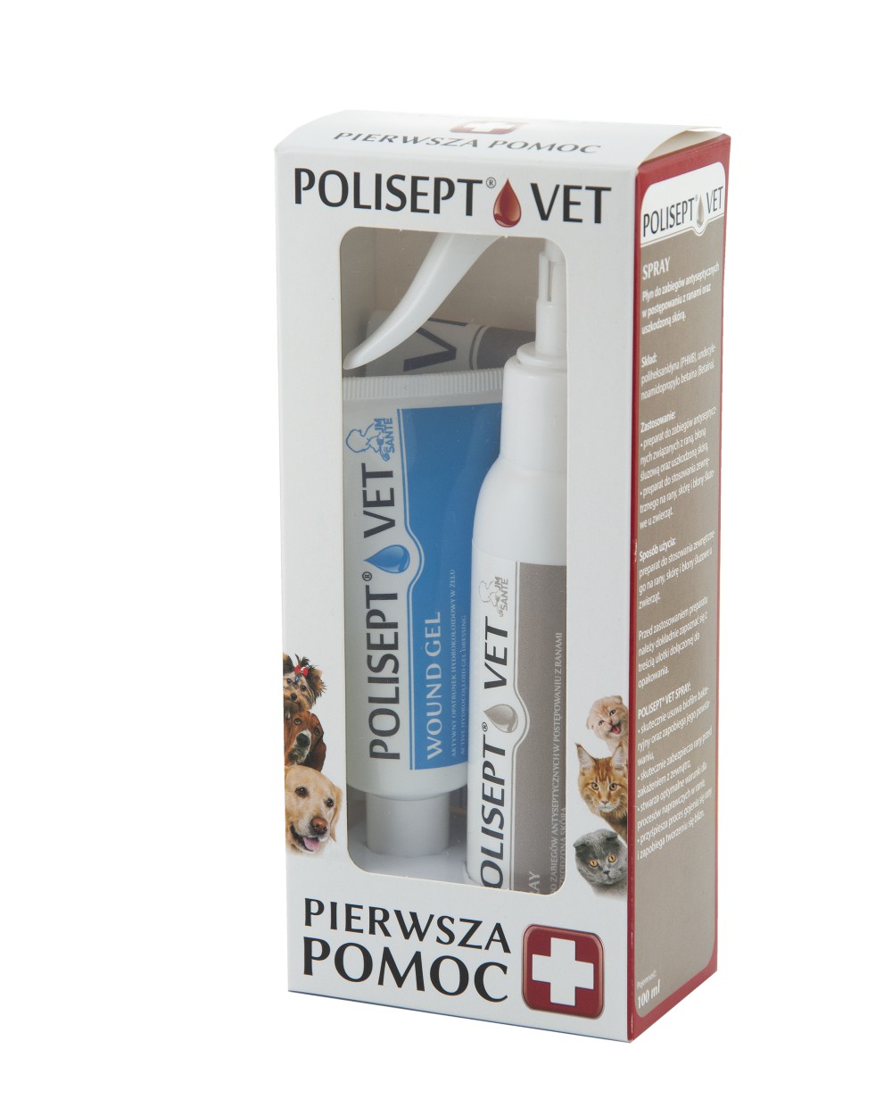 Polisept® Vet Pierwsza Pomoc to niezbędny zestaw w domu każdego opiekuna zwierząt. Preparaty skutecznie przyspieszają i usprawniają proces gojenia się ran.