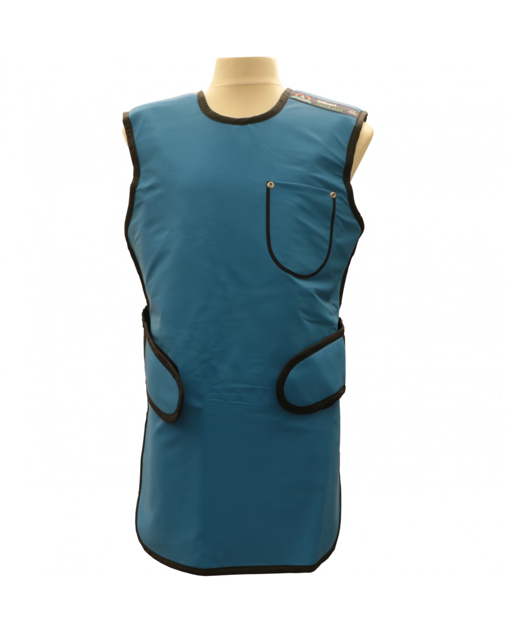 Fartuch bezołowiowy model Classic/komfort chroniący przód oraz częściowo plecy, zapinany na duże rzepy z przodu na wysokości bioder. Rozmiar rzepów ułatwia dopasowanie fartucha do figury konkretnych użytkowników.