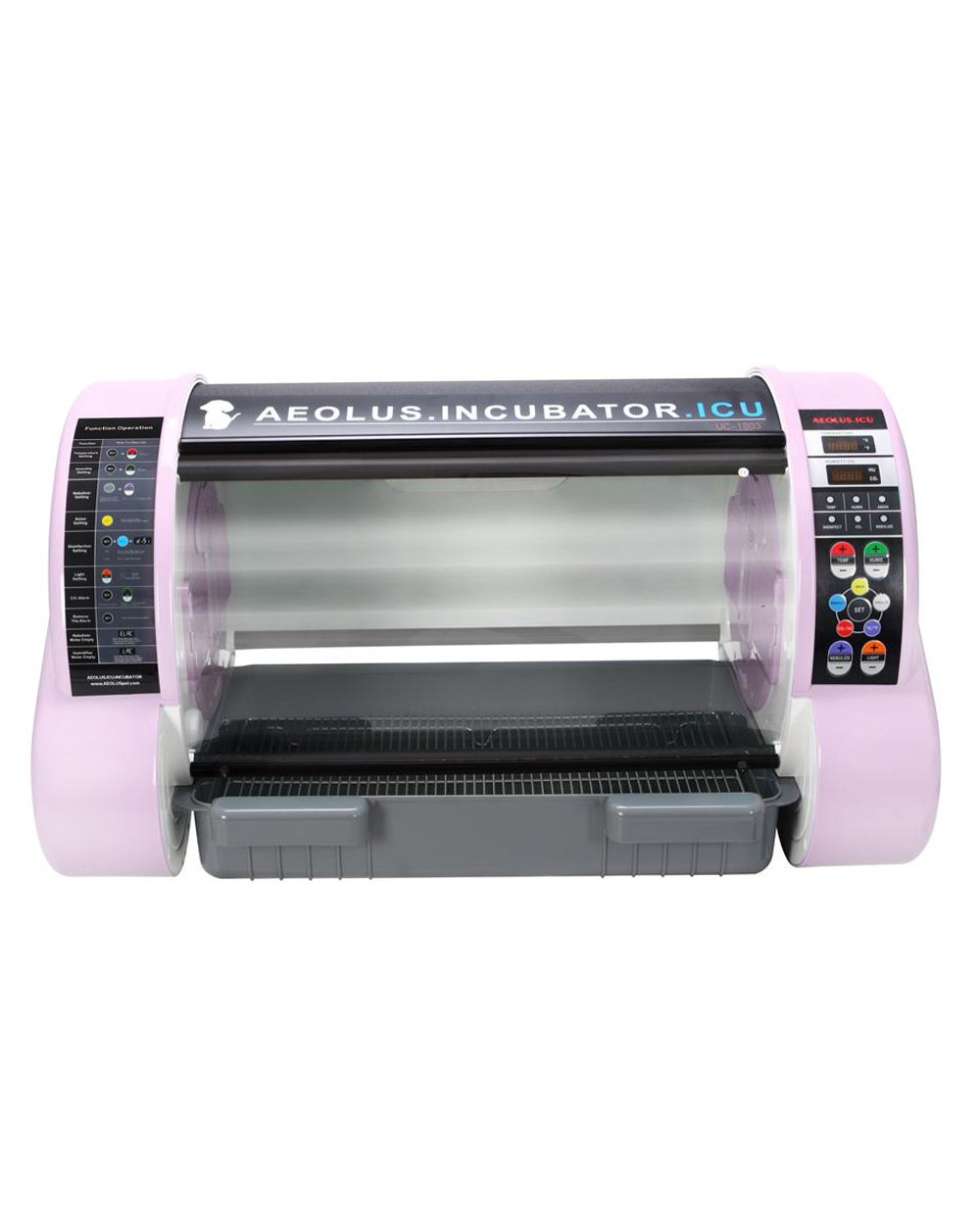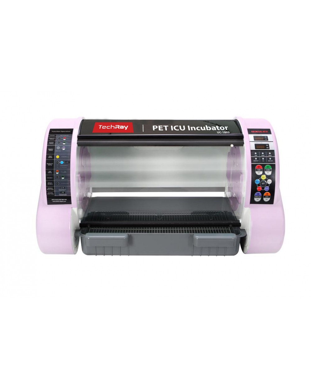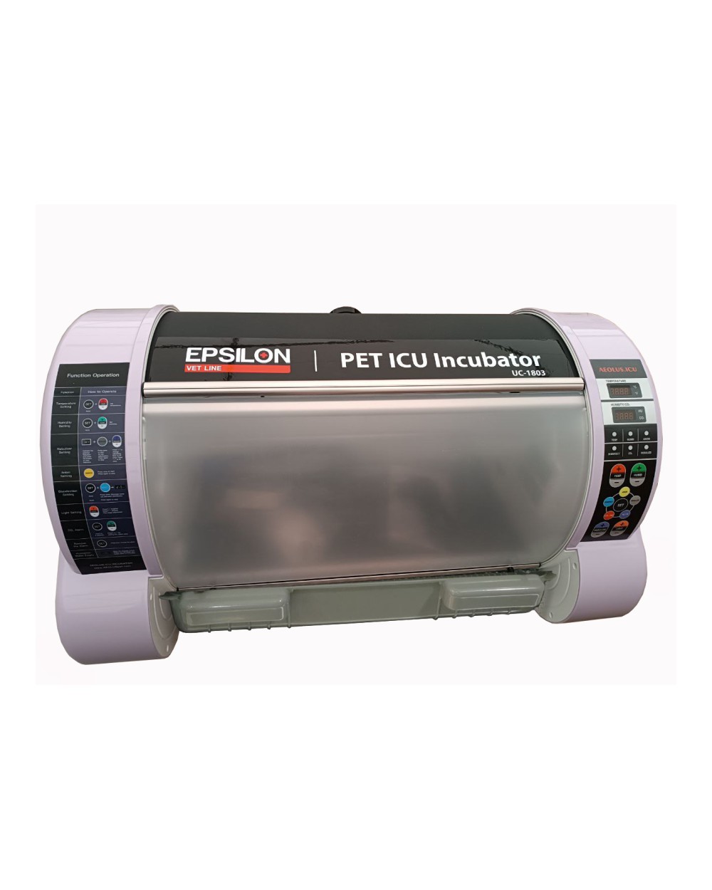 Inkubator UC-1803 to kompaktowe urządzenie intensywnej opieki dla małych lub wymagających szczególnej opieki zwierząt. Pozwala na stworzenie mikroklimatu o odpowiedniej temperaturze, wilgotności i składzie mikroklimatu co pozwala na stwarzanie kontrolowanych warunków w celu podtrzymania procesów życiowych oraz rozwoju. Urządzenie jest wyposażone w system alarmów ostrzegawczych o nieprawidłowościach dla temperatury, nadmiernej wilgotności, nadmiernego stężenia dwutlenku węgla, braku wody w zbiorniku oraz przerwy w zasilaniu