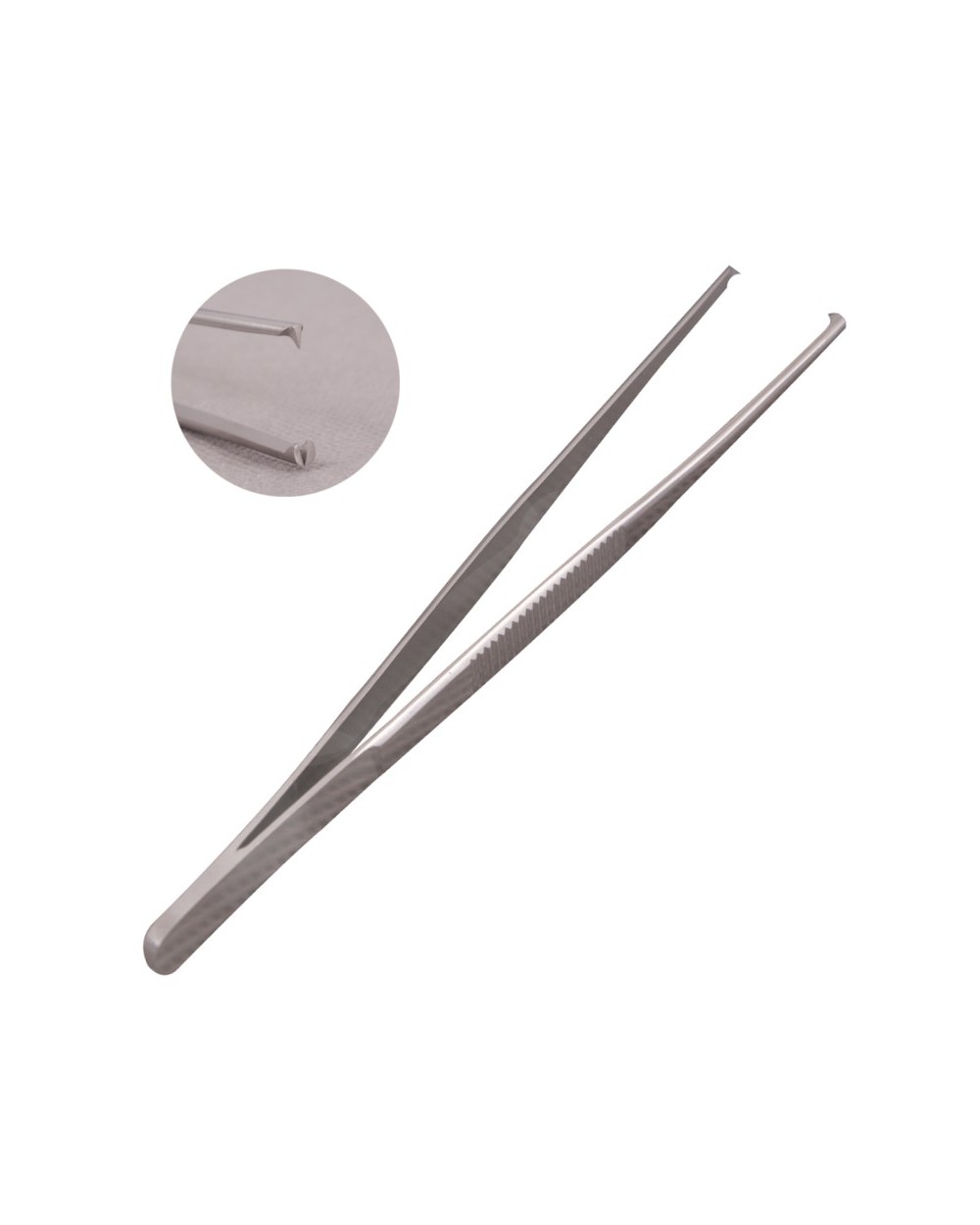 Standardowa pinceta chirurgiczna wykonana jest z wysokiej jakości stali nierdzewnej i wyposażona w ząbki 1x2. Wąskie końce pincety zapewniają możliwość uchwycenia nawet bardzo drobnych krwawiących naczyń. Wykorzystywana jest przede wszystkim do przytrzymywania skóry, powięzi i mięśni. Antypoślizgowe uchwyty gwarantują bezpieczeństwo pracy. Można ją wielokrotnie sterylizować. Długość całkowita: 13 cm.