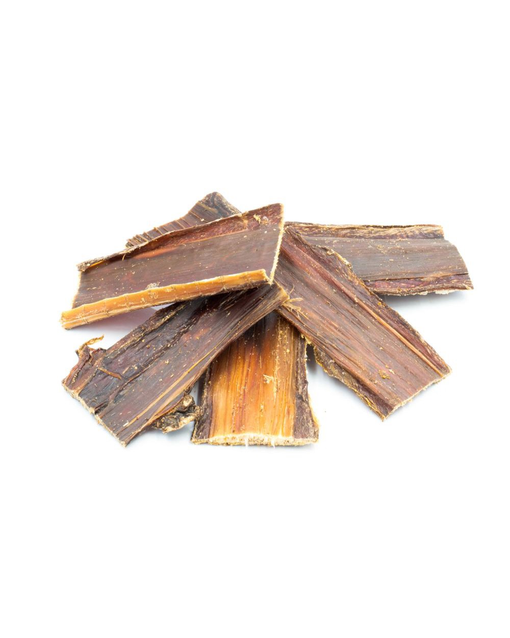 Aromatyczny i lekkostrawny przysmak, który zadowoli nawet najbardziej wymagające psie podniebienie. Bogaty w białko i naturalne składniki odżywcze, które wspierają codzienną dietę psa. Doskonale sprawdzi się w formie nagrody podczas treningów czy spacerów. Wspiera higienę jamy ustnej, ogranicza powstawanie kamienia nazębnego. Rekomendowany dla psów z nadwrażliwością pokarmową i problemami trawiennymi. To idealna alternatywa dla sztucznych gryzaków i przekąsek pełnych zbędnych dodatków. Serwowany w formie sprasowanej. Odpowiedni dla psów w różnym wieku oraz wielkości. Produkt umiarkowanie twardy.