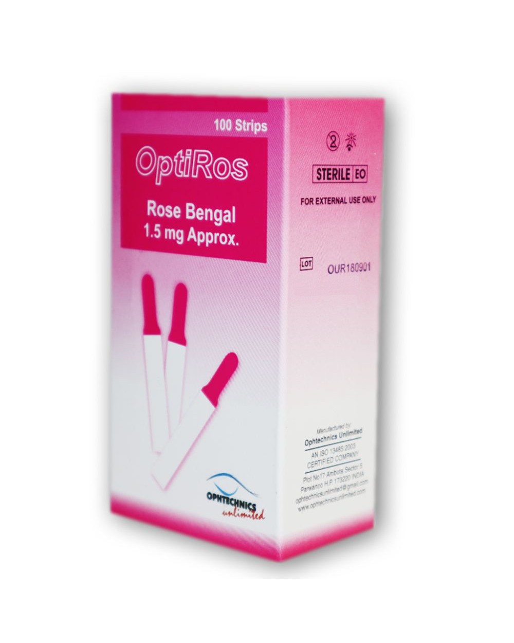 Paski diagnostyczne z różem bengalskim służą do wykrywania degeneracji nabłonka zewnętrznej warstwy rogówki w zespole suchego oka (schorzenie wywołane niedostatecznym wydzielaniem łez lub nadmiernym parowaniem filmu łzowego). Nie powodują przebarwień na zdrowych, proliferujących komórkach oka oraz nie wpływają na żywotność komórek. Sterylne paski pakowane pojedynczo. Każdy pasek zawiera około 1,50 mg różu bengalskiego. Opakowanie zawiera 100 sztuk.