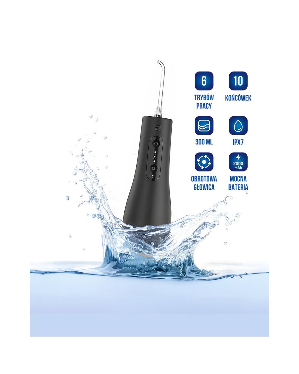 Irygator oferuje 6 różnych trybów czyszczenia, zapewniając wszechstronne możliwości higieniczne. Dzięki temu użytkownik może dostosować czyszczenie do własnych indywidualnych potrzeb, bez względu na to, czy preferuje delikatne czy intensywne oczyszczanie. Wielofunkcyjność irygatora pozwala na kompleksową opiekę nad jamą ustną, zapewniając optymalne efekty czyszczenia w zależności od preferencji użytkownika.