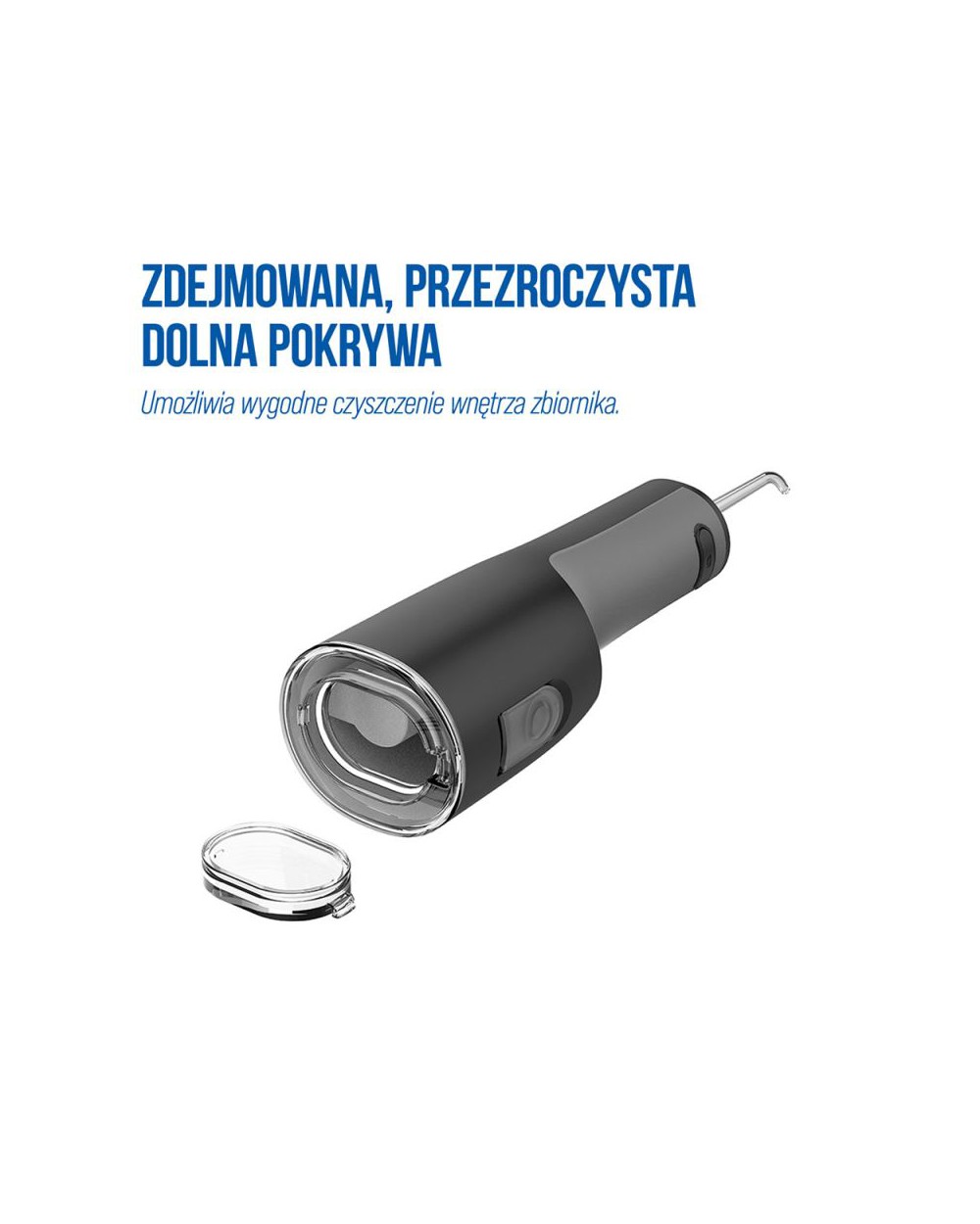 Pojemnik na wodę o pojemności 300 ml umożliwia kontynuację procedury czyszczenia jamy ustnej przez około 80 sekund bez konieczności wielokrotnego uzupełniania wody. Posiada również otwór do nalewania, aby nie musieć zdejmować pojemnika do uzupełniania wody. Zdejmowana, przezroczysta dolna pokrywa umożliwia wygodne sprawdzenie poziomu wody oraz czyszczenie wnętrza zbiornika (zalecane czyszczenie co 20 dni). Dzięki temu użytkownik może dokładnie i skutecznie oczyścić jamę ustną bez przerw, co przekłada się na łatwość i komfort podczas codziennej higieny jamy ustnej.